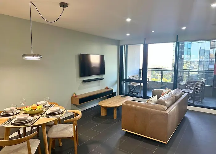 Sky-High 2Br With 1 Parking - Heart Of South Yarra Appartement Melbourne bevindt zich in de Chapel Street wijk, binnen 25 minuten loopafstand van de Koninklijke Botanische Tuinen van Melbourne en biedt een sauna en een overdekt zwembad voor gasten om in te ontspannen. IGA Toorak Rd Plus Liquor en het Immigratiemuseum liggen op minder dan 200 meter van en op 3 km van dit appartement.